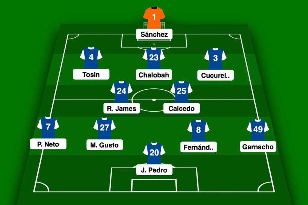 Enfin, il y a une équipe en Premier League qui s’est penchée sur une dernière option : celle de réinventer le rôle de ses latéraux droits de métier. Cette formation, c’est Chelsea. C’est simple, dans le système d’Enzo Maresca en 3-2-4-1, il n’y a pas de place pour les arrières droits en phase de possession. Pourtant, Reece James et Malo Gusto disposent toujours d’un temps de jeu conséquent, et évoluent parfois même ensemble sur le pré. Ils peuvent ainsi se retrouver à quatre postes différents quand les Blues ont le ballon : troisième défenseur central, milieu axial, piston droit ou milieu offensif droit. Une vraie ingéniosité tactique, qui a forcé les deux joueurs à se réinventer pour participer à la construction du jeu. Par contre, en phase défensive, un des deux joueurs sera toujours chargé de coulisser pour reprendre cette position de latéral.